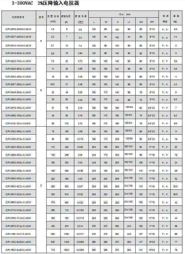 安裝在變頻器輸出端,用于限制變頻器與電機連接電纜的容性充電電流,鈍化變頻器輸出的PWM波的電壓上升率。電機電纜長度超過一定值時,建議在變頻器與電機之間插入一個電機電抗器用于補償在長導線時的電容再充電電流。此長度決定于變頻器的額定值以及電機電纜的類型。